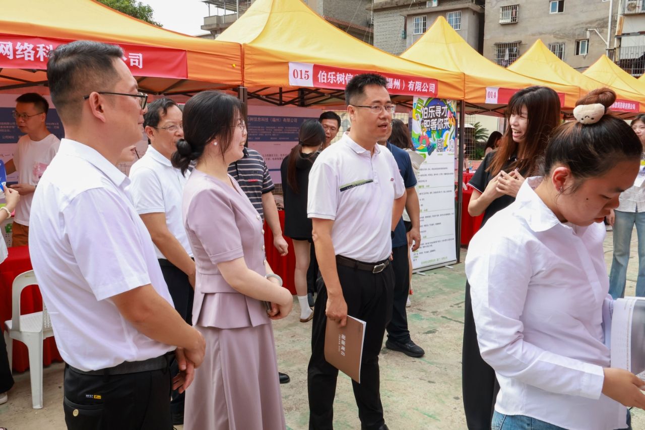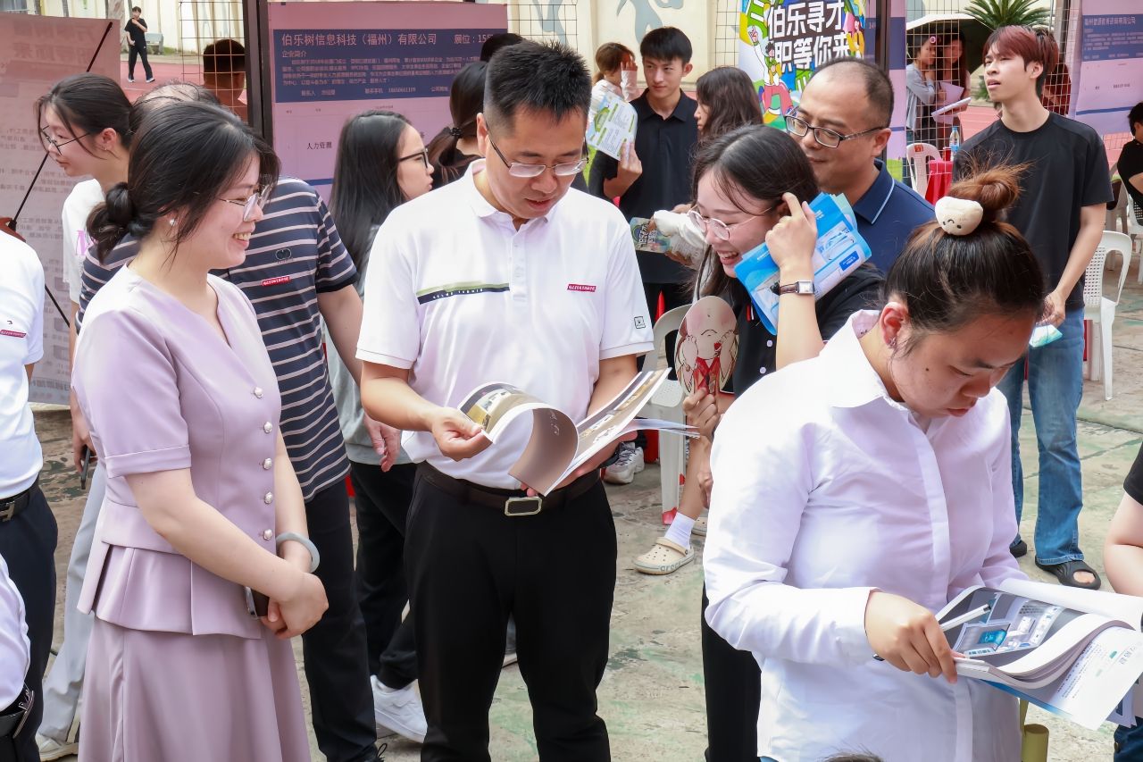 仓山区人社局局长徐庄庄、副局长欧贞敏等一行7人莅临现场,深入了解企业招聘需求、岗位设置及学生求职动态,并与参会企业和学生亲切交流,对招聘会的组织工作及促进校地企合作、服务学生就业的成效给予了充分肯定与指导。