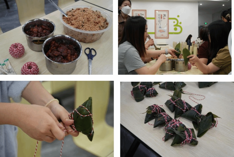 新手上路虽手忙脚乱,却学得认真,在欢声笑语中,歪歪扭扭的粽子逐渐成型。大家一边包粽子,一边分享着端午节的传统习俗,现场欢声笑语不断,充满了浓浓的节日氛围。